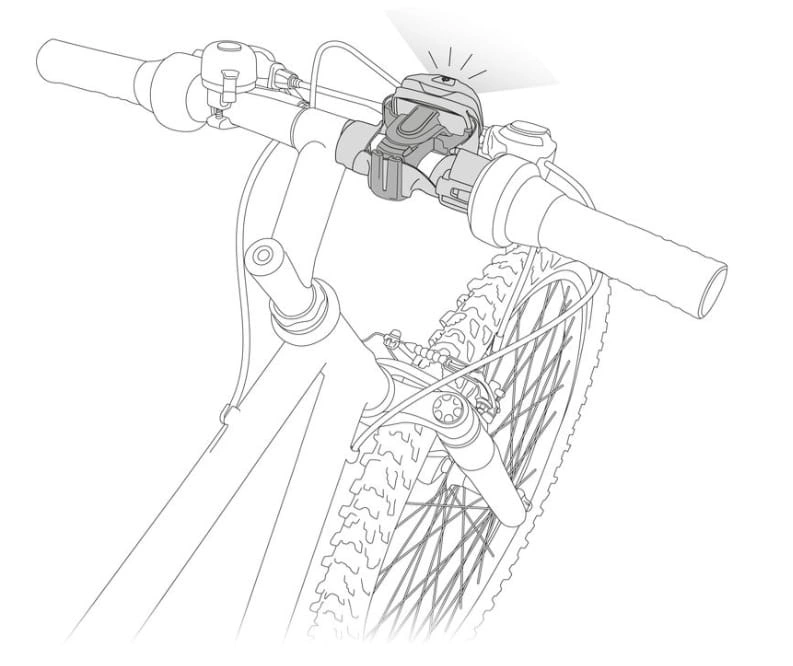 Mocowanie umożliwiające zamontowanie latarki czołowej na kierownicy rowerowej lub na sztycy.