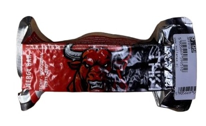 Składniki: mix orzechowy 30% (orzeszki ziemne, migdały, orzechy nerkowca), ziarna sezamu 26%, suszona wołowina 15% (mięso wołowe z szynki, sos sojowy (woda, nasiona soi, mąka pszenna, sól), ocet jabłkowy, cukier trzcinowy, ostra papryka (1%), syrop glukozowy, dekstroza, tłuszcz rzepakowy, tłuszcz słonecznikowy, odtłuszczone mleko w proszku, emulgator: lecytyny (z soi).