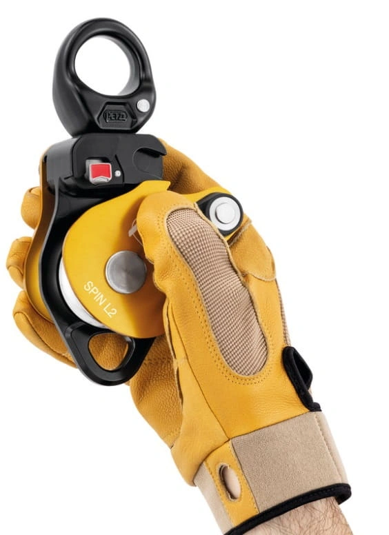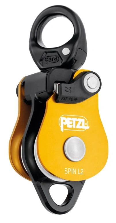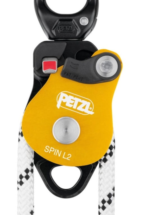 Możliwość otwarcia bloczka, nawet gdy jest wpięty do stanowiska. Bloczek SPIN L2 został zaprojektowany w taki sposób, by maksymalnie uprościć zakładanie układów do wyciągania, tyrolek lub odciągów. Dwie rolki umieszczone równolegle oraz dodatkowy otwór do wpinania umożliwiają konstrukcję złożonych układów do wyciągania. Rolki o dużej średnicy, zamontowane na szczelnym łożysku kulkowym zapewniają bardzo dużą wydajność, Krętlik ułatwia operowanie bloczkiem pod obciążeniem: umożliwia jego orientację i bezpośrednie wpięcie karabinków, lin lub taśm.