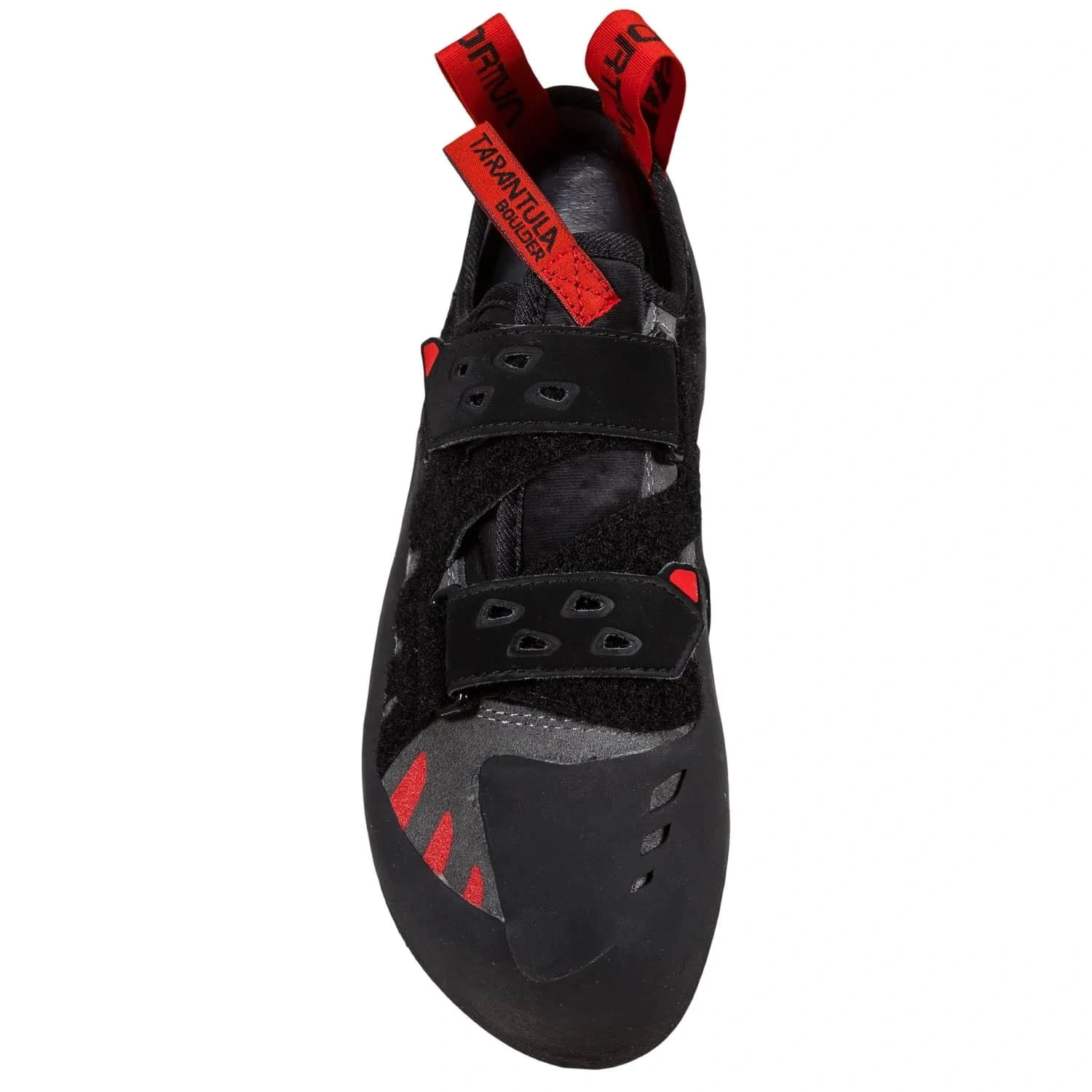 Buty Tarantua Boulder to idealny model dla osób zaczynających swoją przygodę ze wspinaczką boulderową. But jest uniwersalny w kształcie dopasowując się praktycznie do każdej stopy. Dwa praktyczne rzepy w przeciwnych kierunkach przyśpieszają zakładanie. Specjalnie zaprojektowana pięta ułatwia haczenie, a dwudzielna podeszwa ułatwia wymianę zużytej gumy. Palce zostały dodatkowo zalane gumą ułatwiając trudne technicznie podhaczenie palcami.