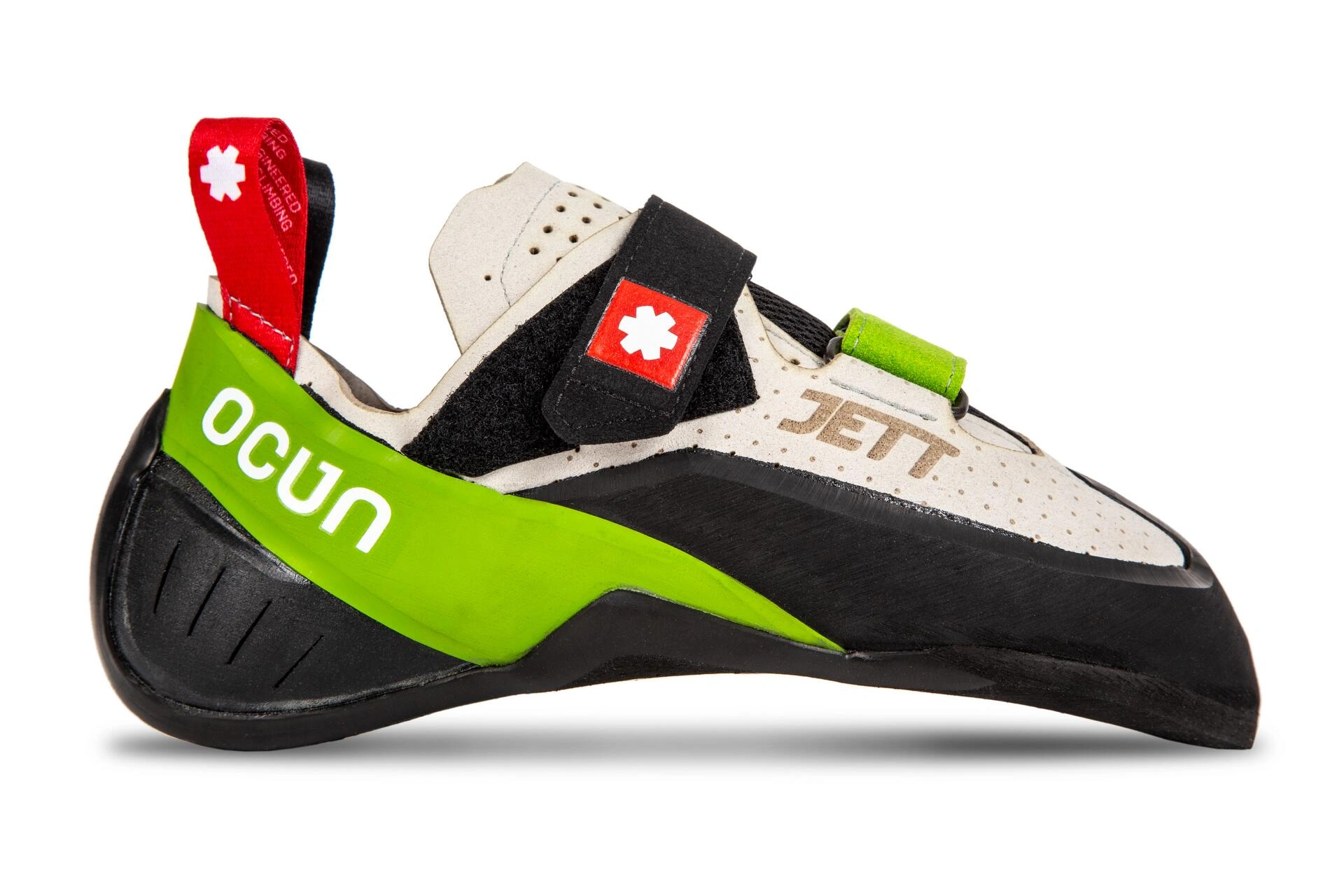 Nowa propozycja od OCUN zasługuje na uwagę ze względu na doskonałe połączenie dwóch najistotniejszych cech: komfortu oraz precyzji. Jett przeznaczony jest dla wspinaczy, którzy mają szersze stopy i cenią sobie dobre wsparcie ze strony buta podczas stania na najmniejszych możliwych stopniach. Wyraźnie zarysowany czubek oraz sztywna podeszwa sprawiają, że Jett idealnie sprawdzi się wszędzie tam, gdzie wymagana jest nienaganna praca stóp, słowem - jeśli kochasz techniczne piony, Jett szybko stanie się Twoim ulubionym narzędziem.