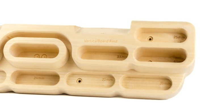 Chwytotablica VerticalBoard First jest odpowiednia dla początkujących wspinaczy, którzy chcą stać się silniejsi, aby ukończyć swoje projekty. Oferuje wiele różnych głębokości, aby umożliwiać stopniowy progres (od 45 mm do 20 mm).