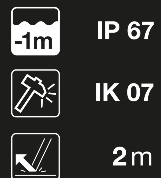 • Wytrzymałość: odporność na uderzenia IK07 (EN/IEC 62262)
