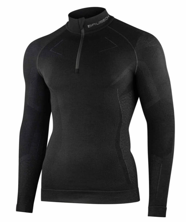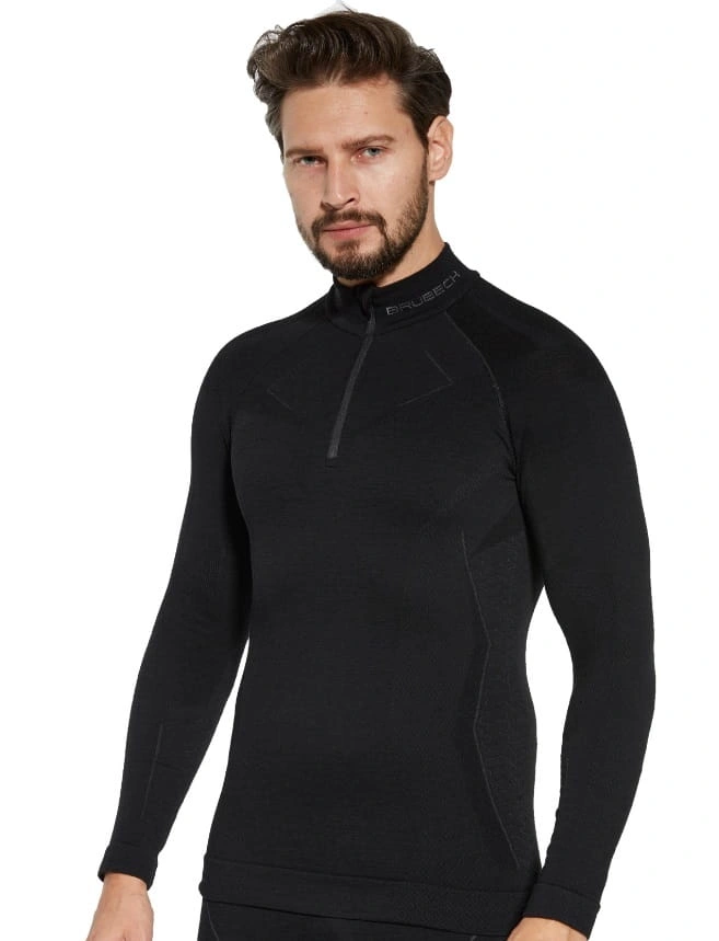 Koszulka z wełny merino z długim rękawem wykonana w dwuwarstwowej konstrukcji dzianiny. Pierwsza warstwa odpowiedzialna jest za transport wilgoci na zewnątrz dzianiny, druga za izolacje przed zimnem. Dzięki bezszwowej technologii nie jesteś narażony na otarcia lub dyskomfort spowodowany uwierającym szwem. Bielizna merino nie przejmuje nieprzyjemnych zapachów i jest miła w dotyku. Posiada zamek błyskawiczny w 1/3 długości. Pozwoli on na wpuszczenie świeżego powietrza, gdy będzie nam za gorąco w trakcie aktywności. Męska bielizna Brubeck to 1st layer, czyli zakładamy ją na gołe ciało, lub w połączeniu z bielizną Base Layer.