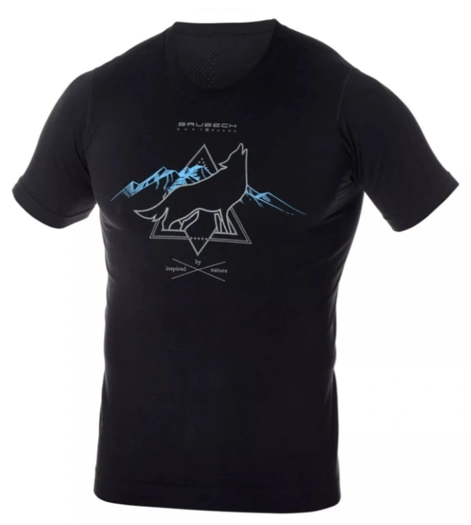 Koszulka Męska Brubeck Outdoor Wool czarna wilk3