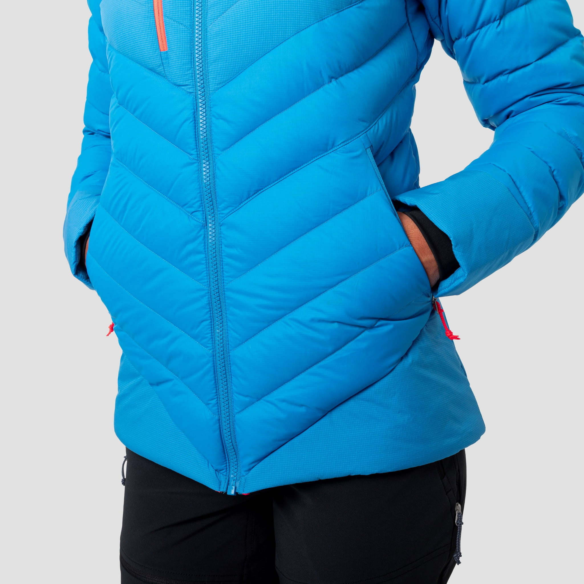 Lekka i ciepła damska kurtka puchowa, która doskonale sprawdzi się jako warstwa ocieplająca pod kurtkę membranową lub solo. Przeznaczona do wspinaczki, turystyki górskiej.