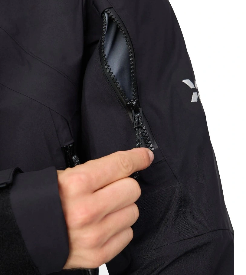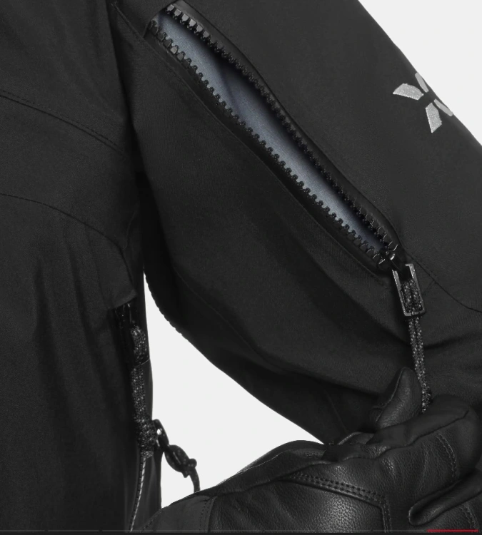 - Kieszeń na rękawie z wodoodpornym zamkiem YKK® VISLON® AquaGuard®.