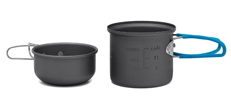 Nowoczesna menażka turystyczna wykonana z anodyzowanego aluminium o pojemności 500 ml z pokrywką, która pełni też funkcję patelni. Przeznaczona do gotowania na palnikach turystycznych.