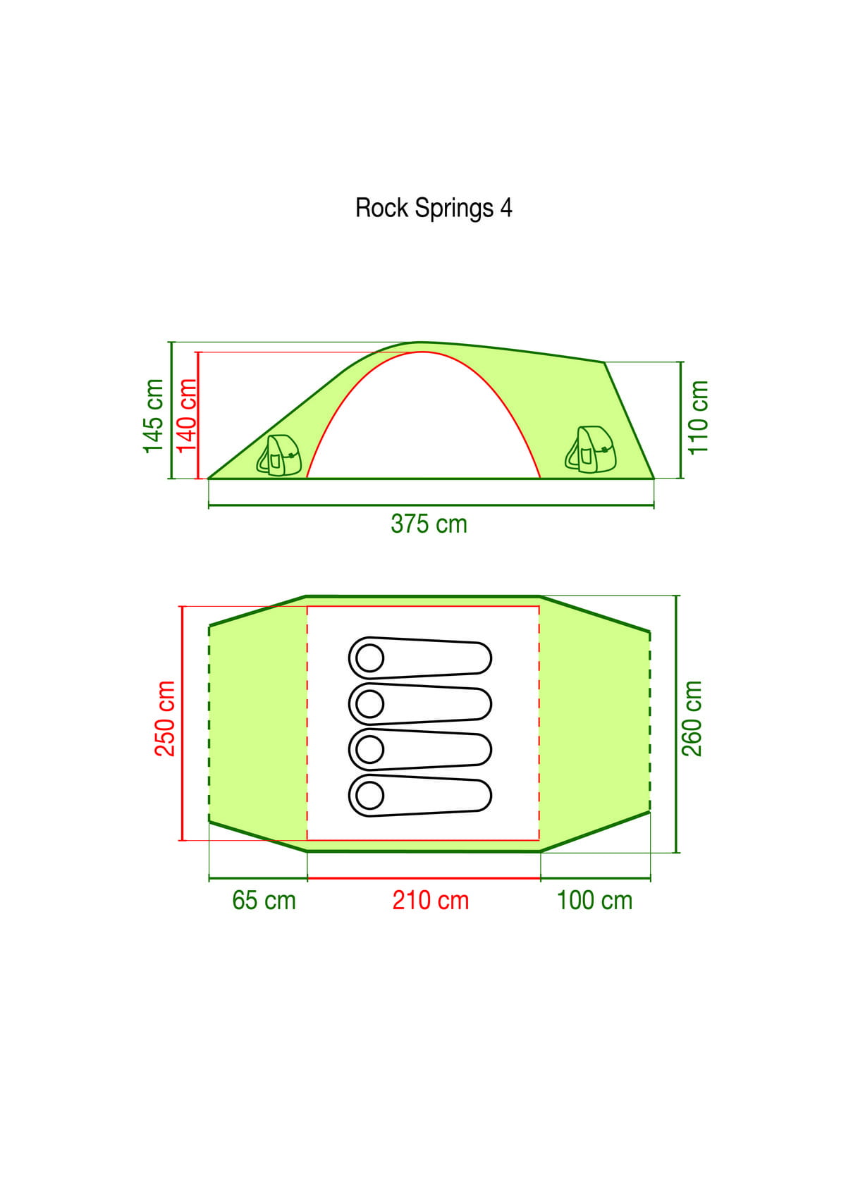 Duży, rodzinny namiot, idealny na wyjazdy krótsze i dłuższe, świetna opcja na pola campingowe.