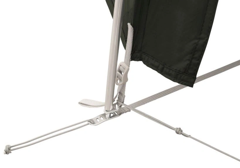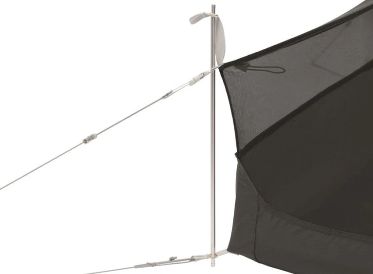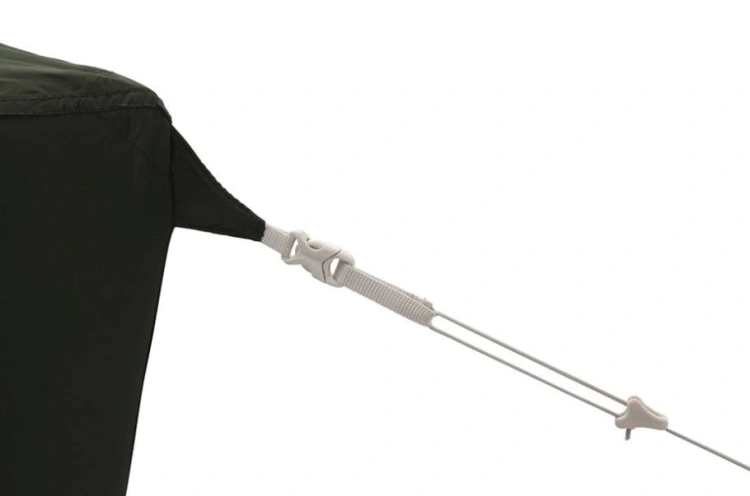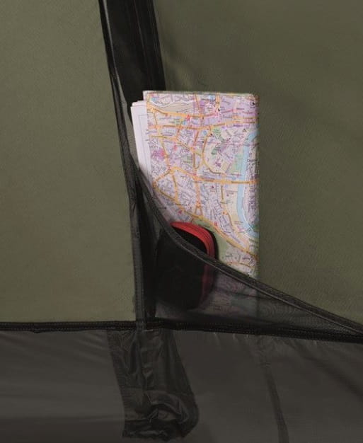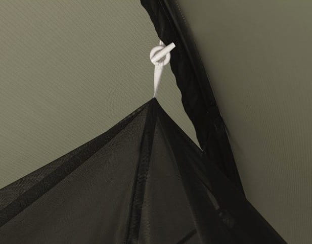 Drzwi wejściowe do sypialni możesz zwinąć i schować do specjalnej kieszeni. Wewnątrz modelu znajdziesz również kieszeń na drobiazgi. Całość jest rozstawiana na jednym pałąku oraz czterech tyczkach. Ten model możesz rozstawić na cztery różne sposoby: jak klasyczny namiot jak namiot z podwiniętym do połowy tropikiem, tylko sypialnię, bez tropiku, a także tylko tropik, bez sypialni. Model ma również możliwość zawieszenia sznurka do suszenia bielizny. W zestawie otrzymujesz również zestaw naprawczy do tropiku oraz pokrowiec transportowy.