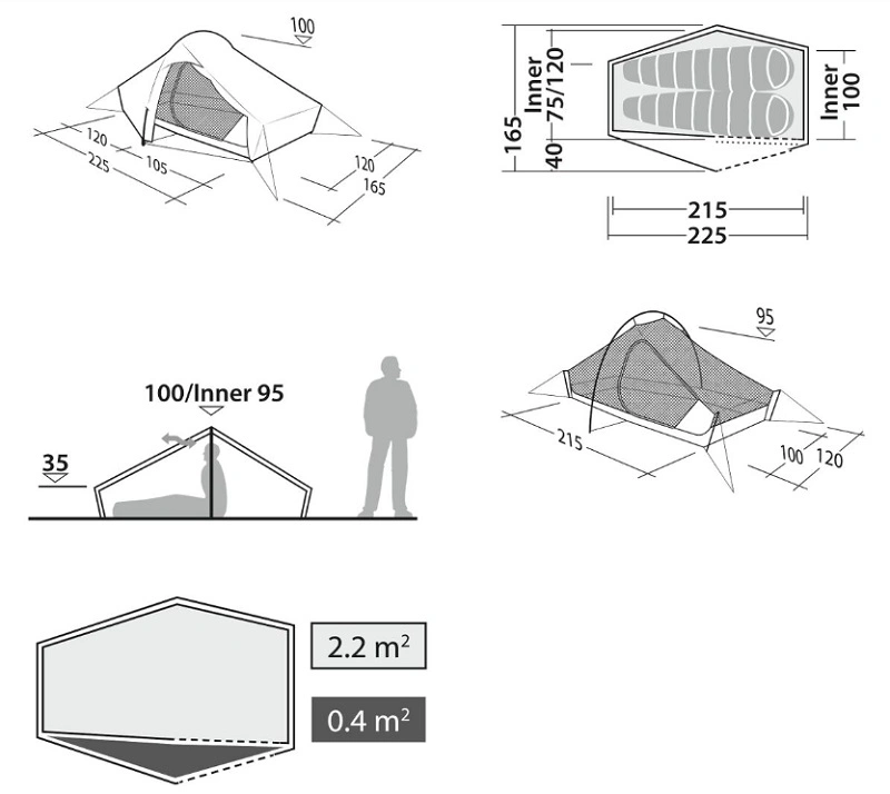 Dwuosobowy namiot Robens Chaser 2 LW wykorzystuje wszechstronny system FlexPitch z wewnętrznym zawieszeniem na pierścieniach (Inner Ring Suspension), który umożliwia różne konfiguracje rozstawienia tropiku i sypialni w zależności od pogody. Pozwala to na pełne lub częściowe zadaszenie z widokiem na niebo, wolnym od owadów, co sprawdza się w ciepłe noce. Linka na ekwipunek z wnętrza może być przeniesiona do tropiku, aby zachować jego kształt przy samodzielnym użytkowaniu, co dodatkowo redukuje wagę. Opcje wentylacji zewnętrznej obejmują dolne otwory wentylacyjne, wentylację w szczycie drzwi oraz dwukierunkowy zamek błyskawiczny.