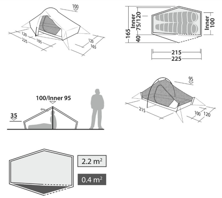 - Namiot wewnętrzny: 100% nylon