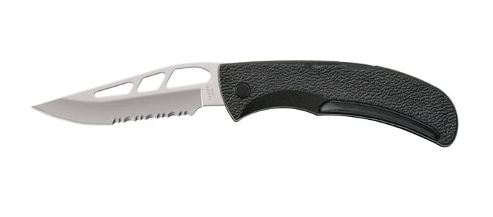 Wykonany ze stali nierdzewnej wysokiej jakości 420HC z częściowo ząbkowanym ostrzem.