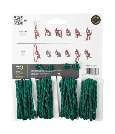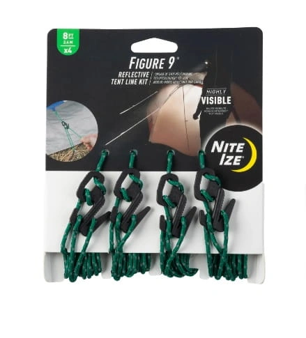 Zestaw Figure 9 Tent Line Kit sprawia, że napinanie i naciąganie linek odciągowych namiotu bez wiązania węzłów to pestka. Zestaw ten łączy w sobie cztery lekkie plastikowe napinacze linek Figure 9 Cord Tighteners z czterema odblaskowymi zielonymi linkami, tworząc łatwy w użyciu, dobrze widoczny system linek namiotowych.