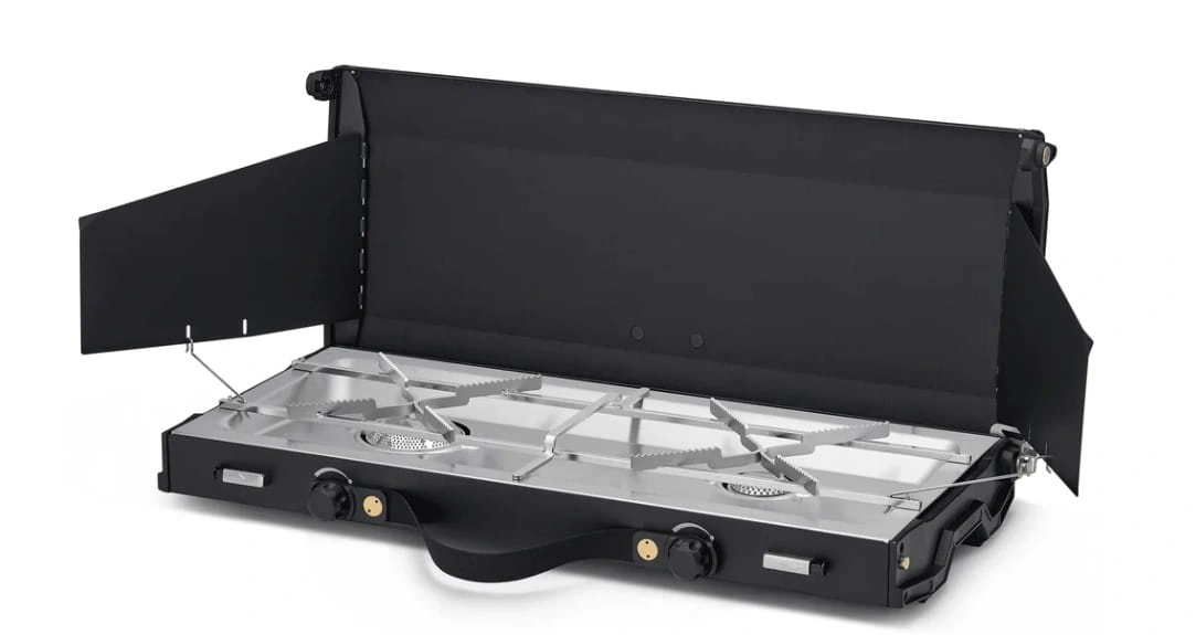 Ta praktyczna 2-palnikowa kuchenka została opracowana, aby przenieść „towarzyskie” gotowanie na świeżym powietrzu na wyższy poziom. Zainspirowana ogniskami i sposobem, w jaki przyciągają one ludzi, jest miejscem spotkań. Alike robi to wszystko i jeszcze więcej. Zaprojektowana ze zdejmowaną pokrywą, kuchenka umożliwia gotowanie osobom, niezależnie po której jej stronie stoją. Pokrywa z dębowymi listwami może następnie pełnić funkcję płyty grzewczej dla patelni, które potrzebują miejsca do odpoczynku po zdjęciu z kuchenki. Duża przestrzeń do gotowania pozwala na „więcej” - większe garnki, większe patelnie i dodatkowych kucharzy. Dwa unikalne palniki zapewniają różne opcje płomienia, jeden szeroki i jeden wąski, oba z precyzyjną kontrolą płomienia, która zaspokaja potrzeby wszystkich stylów gotowania. Zintegrowane szyby przednie blokują się w miejscu, aby pomóc kontrolować spójność płomienia. Elegancki korpus z aluminium, dębowe listwy i mosiężne detale poprawią wygląd każdego kempingu i wytrzymają wiele lat użytkowania. Wewnętrzne wsporniki garnka i tacka ociekowa są wyjmowane, co ułatwia czyszczenie. Podczas przechowywania wystarczy zamknąć - ten smukły piec można schować niemal wszędzie.