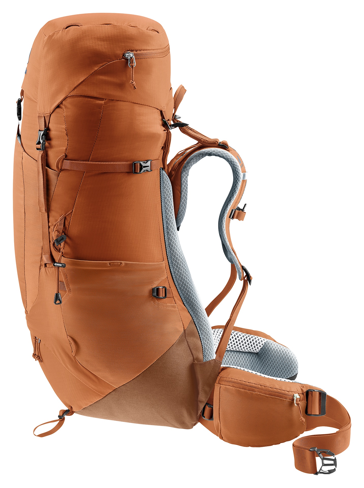 Lekki plecak trekkingowy, stworzony z myślą o ambitnych, długodystansowych wyprawach, wyposażony w system regulacji długości pleców VariQuick oraz pas biodrowy ECL, co zapewnia ścisłe, wygodne dopasowanie i bardzo efektywne przenoszenie obciążenia. System nośny Aircontact Lite z przylegającym panelem z pianki o otwartych komórkach i kanałem wentylacyjnym gwarantuje wyraźnie lepszą oddychalność oraz odciąża kręgosłup. Efekt: doskonała równowaga między komfortem a niską wagą podczas długich dni na szlaku.