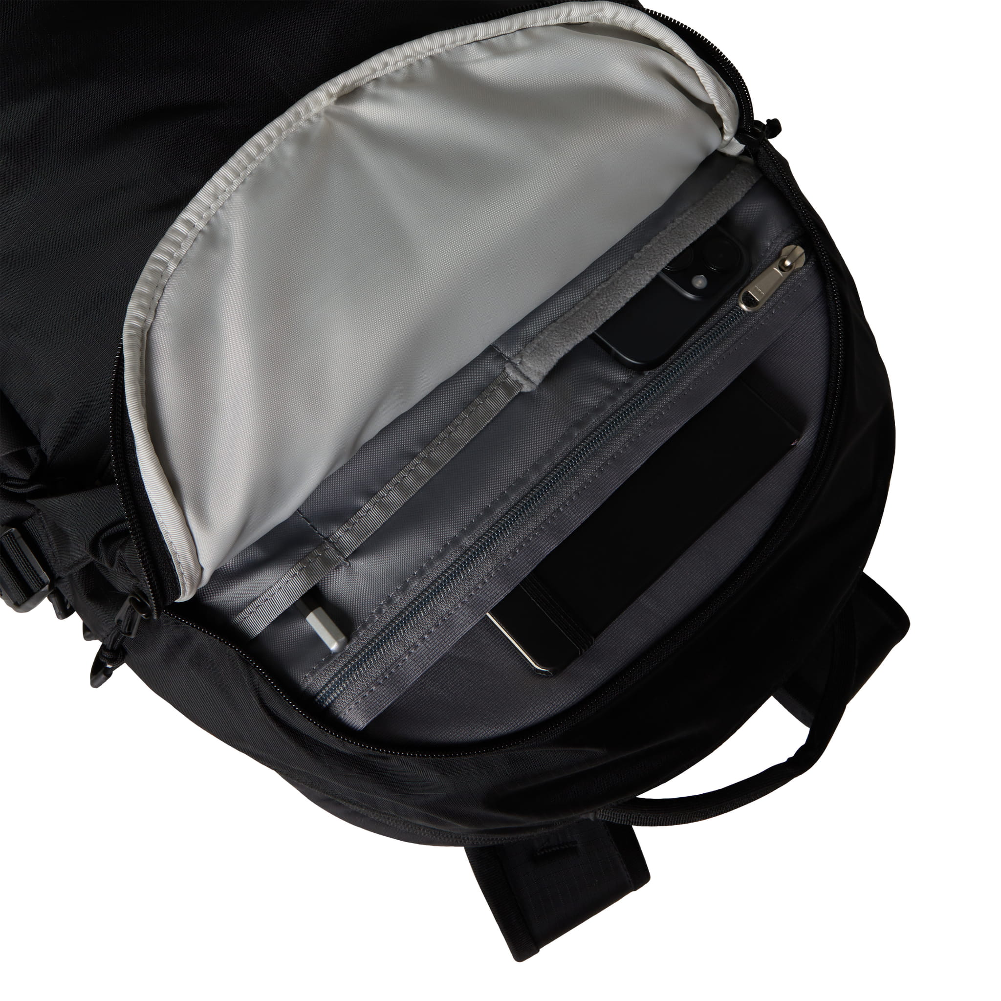 - Zewnętrzna, wyściełana polarem kieszeń na okulary przeciwsłoneczne, telefon lub klucze