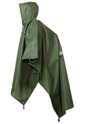Ponczo Rockland Tarp to peleryna i proste zadaszenie w jednym. Dzięki obszernym kształtom i głębokiemu kapturowi, zabezpiecza przed zmoknięciem podczas wielogodzinnych wędrówek. Peleryna sprawdzi się zarówno z plecakiem jak i bez plecaka. Wytrzymały i podklejony materiał zapewnia wiatroszczelność i odporność na uszkodzenia mechaniczne, a specjalnie przedłużony dół dodatkowo osłania nogi. Peleryna wyposażona jest w pętelki na rogach i na środku, które umożliwiają użycie kijów trekkingowych, linek lub śledzi namiotowych (nie są częścią produktu) do budowy schronienia typu tarp. Całość po zwinięciu zajmuje niewiele miejsca.