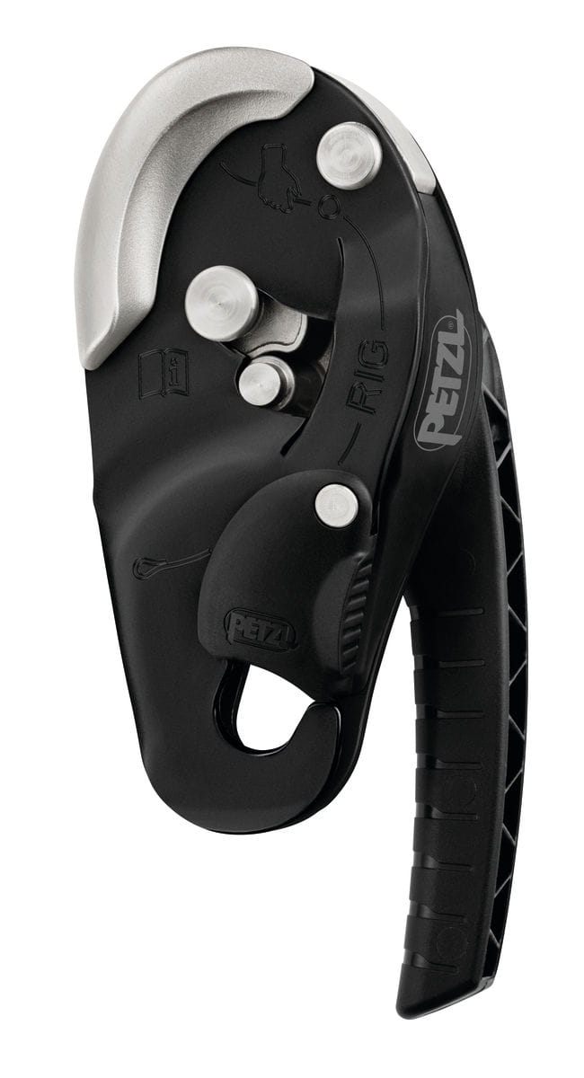 RIG, przyrząd zjazdowy z automatyczną blokadą. Jest wyposażony w ergonomiczną rączkę umożliwiającą wygodną kontrolę zjazdu. System AUTO-LOCK umożliwia łatwe przyjęcie pozycji na stanowisku pracy, bez konieczności manipulacji rączką i robienia blokady z liny. Po zablokowaniu lina może być wybrana, bez konieczności manipulacji rączką. Zapadka zabezpieczająca na okładce ruchomej umożliwia wpięcie w linę bez konieczności wypinania z uprzęży, co ułatwia przepinanie się. Wzmocnienie ze stali nierdzewnej w strefie tarcia liny zwiększa odporność przyrządu na zużycie.