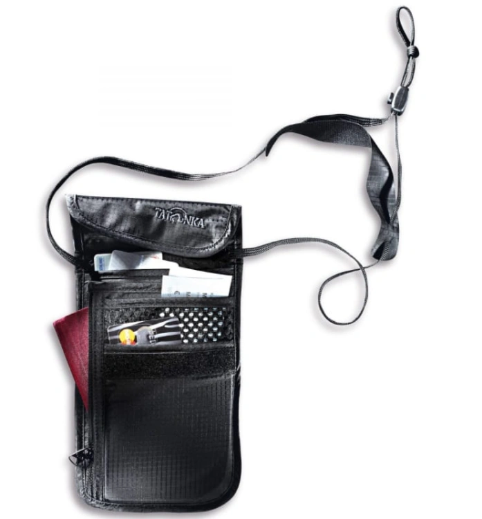 Saszetka na szyję z przyjaznego dla skóry materiału w rozmiarze paszportu UE.