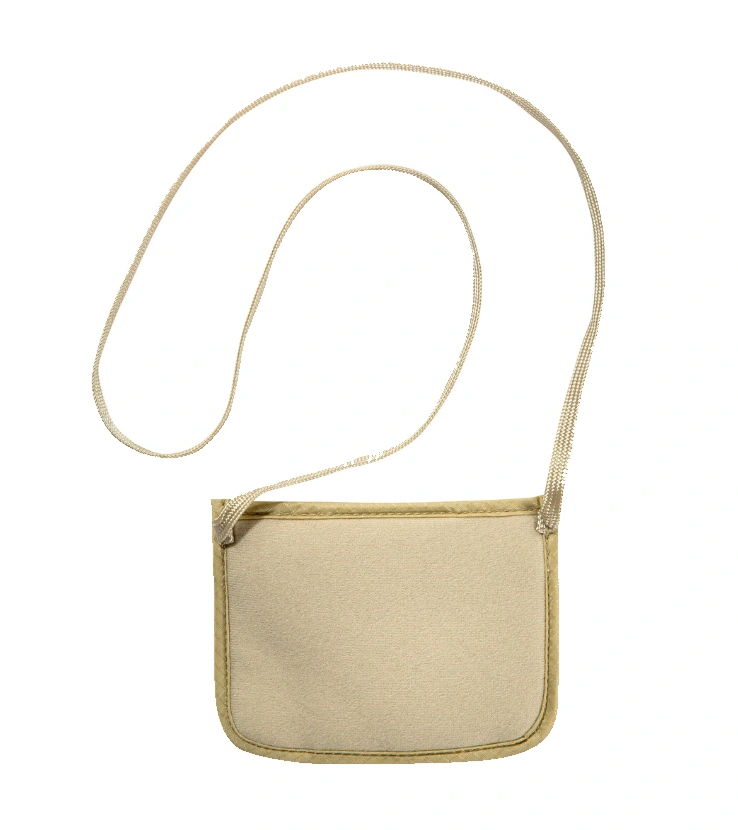 Dyskretna saszetka na piersi z ochroną przed odczytem RFID/ NFC. Z kieszenią na najważniejsze dokumenty i kieszenią na suwak na drobne.