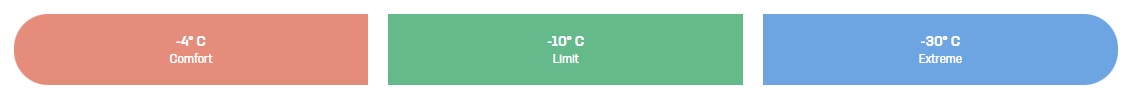 TEMPERATURA GRANICZNA (Limit) - jest oparta na najniższej temperaturze, przy której "standardowy" dorosły mężczyzna (25 lat / 70 kg / 173 cm) może oczekiwać wygodnego snu w pozycji relaksacyjnej. Doświadczony użytkownik może zoptymalizować właściwości izolacyjne poprzez dobór odzieży i innych czynników.